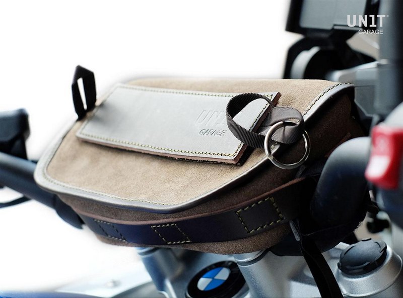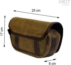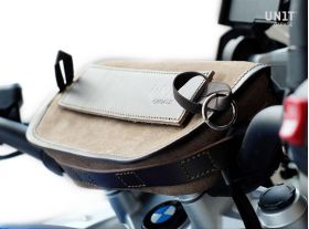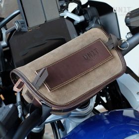 Universal handlebar bag made by hand in Italy in top quality rugged split leather treated with wax to make it waterproof.