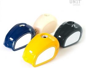 The parts of the kit are supplied painted, complete with graphics under clear coat and ready for assembly. They are also available unpainted, if you want to paint them to your own design. The shorter fuel tank allows a better riding position. You can get up to six centimetres [2.3 inches] closer to the handlebars. Essential for off-road riding ... and even better on the road. Its lines and colours recall the "regolarità" motorcycles of the seventies / eighties. The fuel cap and fuel pump remain the original ones from your motorcycle, the reserve warning light will still work, you won't have to tamper with anything, the kit is completely reversible. The plastic tank (Nylon) is supplied painted with stickers under clear coat or neutral to paint it as you prefer.