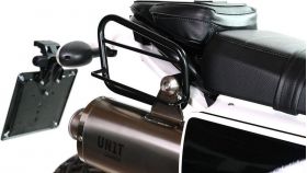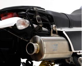 Side rack for the Fuoriluogo Kit made of steel tube with matt black epoxy powder coat. Completes the back and is also great as a passenger grip. It is very easily fix to the frame, and is perfect for attaching a tool bag. NB: the 2 leather straps for attaching objects to the luggage rack are not included and can be purchased separately (available in black or brown).