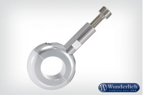 These clamps can be used to securely attach a MultiPod to a tubular handle bar. The set includes a removable 40 mm extension. The two-piece clamp is machined from aluminium and Silver anodised. The MultiPod can be directly bolted to the clamp or brought into the correct position using the extension piece.
