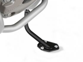 Additional insurance for the GS: fully loaded or on loose ground, a GS supported on the side stand can easily get bogged down. A precisely machinedextension plate that can quickly be bolted to the side stand eliminates this risk.