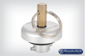 This classic Wunderlich part replaces the original plastic oil filler plug and offers an alternative to the Wunderlich “Locking Oil Filler Plug”. It opens with an unusual size “Allen” key, which is attached to your key ring, this makes it harder to remove than the original. A built in small “O” ring, which sticks in the hole of the plug, makes the removal of the plug an easy task, this is especially handy when the plug is hot. Available in either top