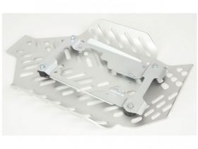 Background: When the original protector plate is subjected to a strong impact from below or is hooked on something from underneath, it can shear off its front bracket and the rigid rear brackets bend into the engine cases. Our engine protection plates have pressed strengthening swages greatly increasing stiffness and stability.