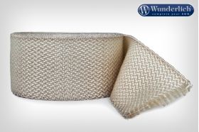 This heat protection exhaust tape has been race-tested intensively. It ensures to raise temperature and flow velocity inside the downpipes. It is also great for insulation of the pipes and may also protects trousers, boots and bags. The tape is characterized by its high resistance to temperature (750°C) and its high flexibility which makes wrapping of tight radii possible. Note: Wrapping of downpipes ensures a certain insulation, however any direct contact in these areas should best be avoided.